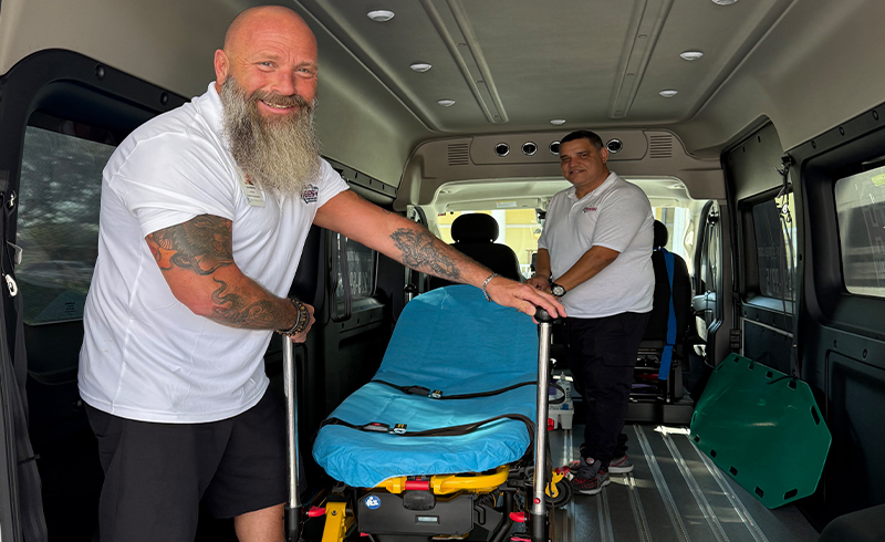 We offer stretcher non-emergency medical transport vehicles. Patient transport vehicles are built for comfort and are equipped with the latest in entertainment technology as well as three beds to accommodate other members of the family traveling together.